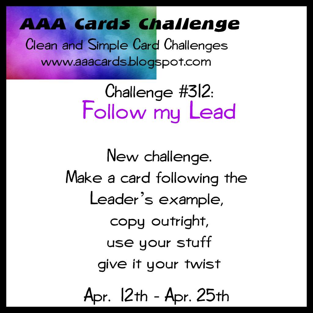 Come join in the fun; we’d love to see how you were inspired. Check out the projects that the other artists at AAA Cards have created, take the challenge and link your creation to the challenge post. We’d love to have you join us. You have until Saturday 25th April to link up your project.