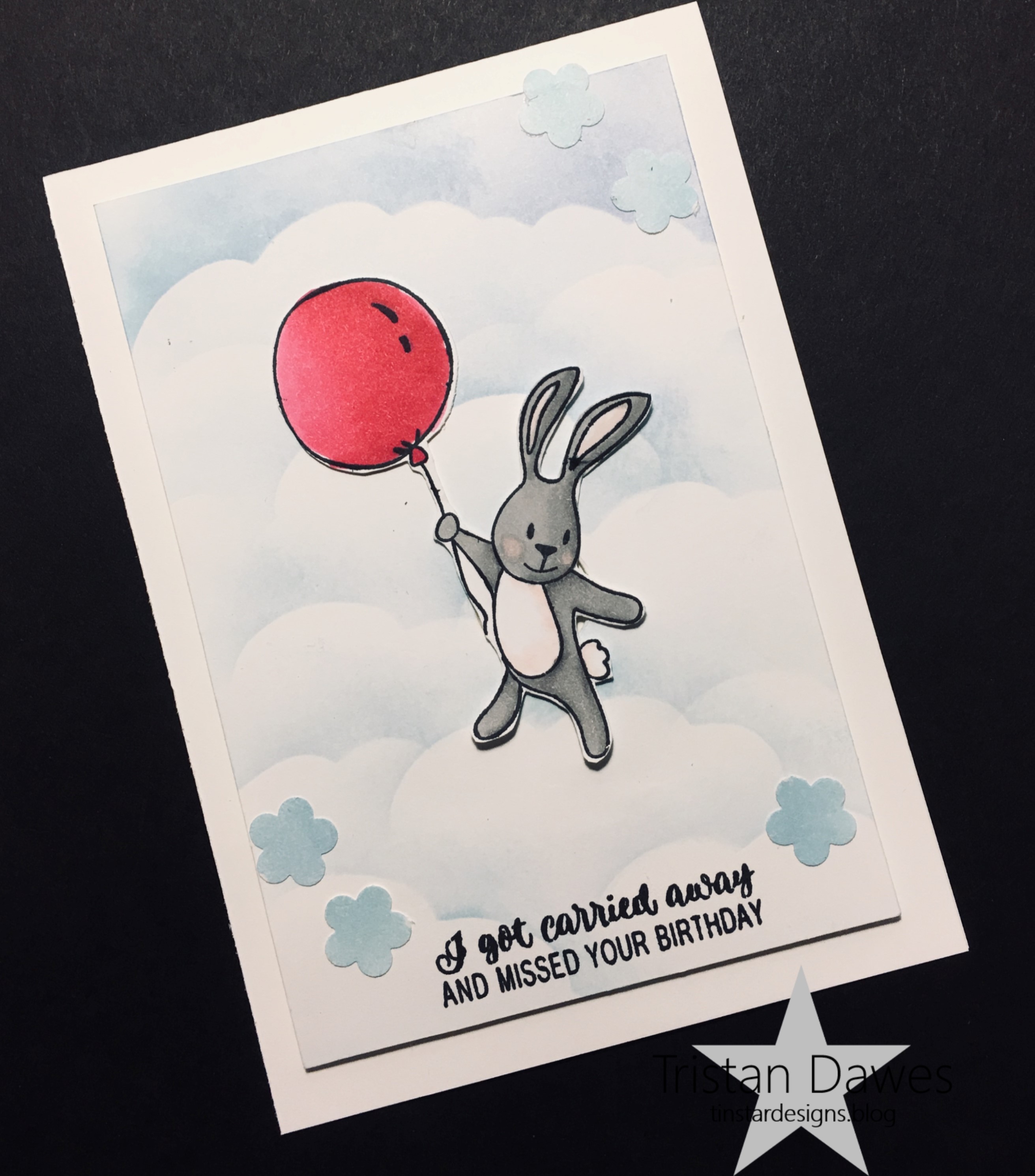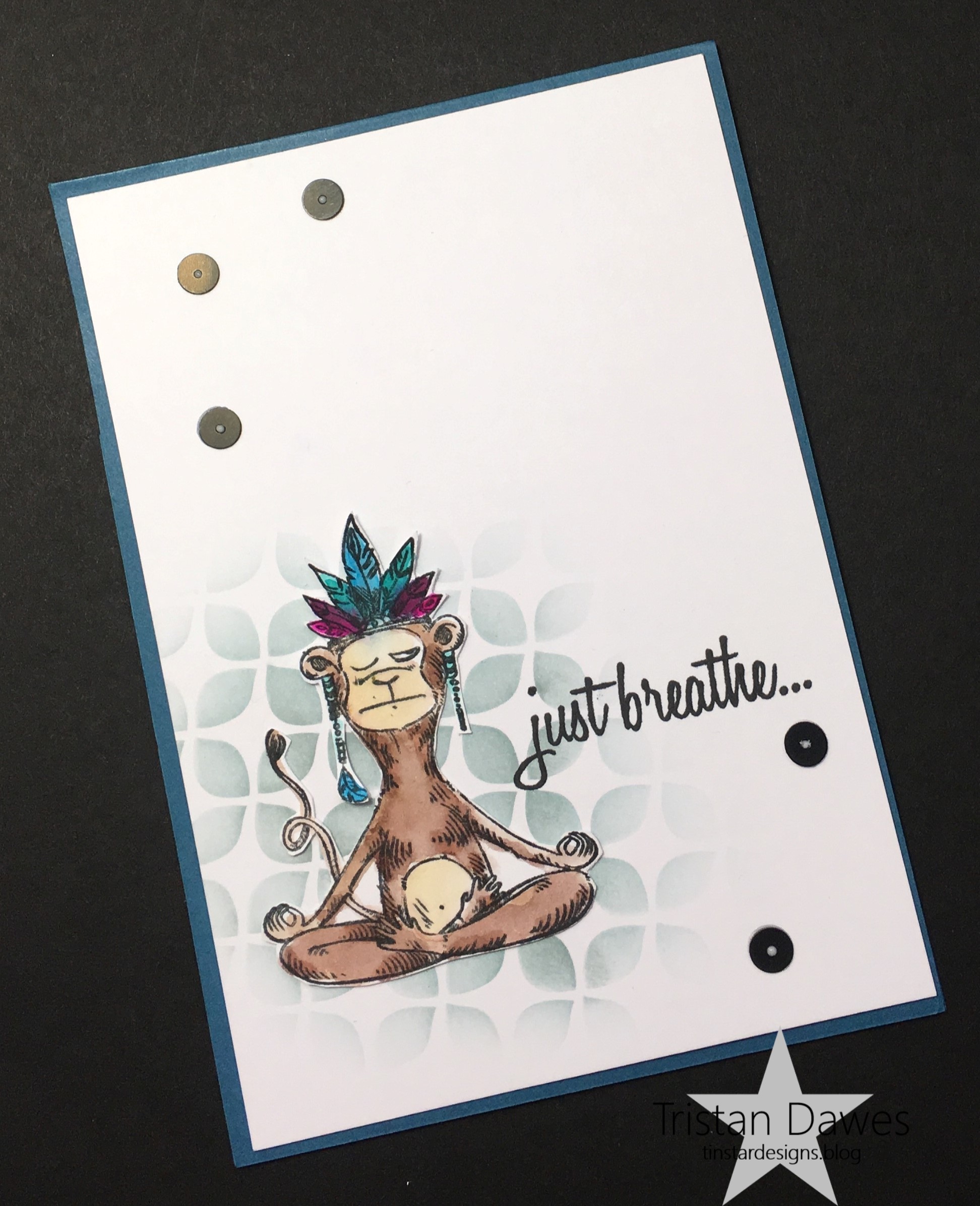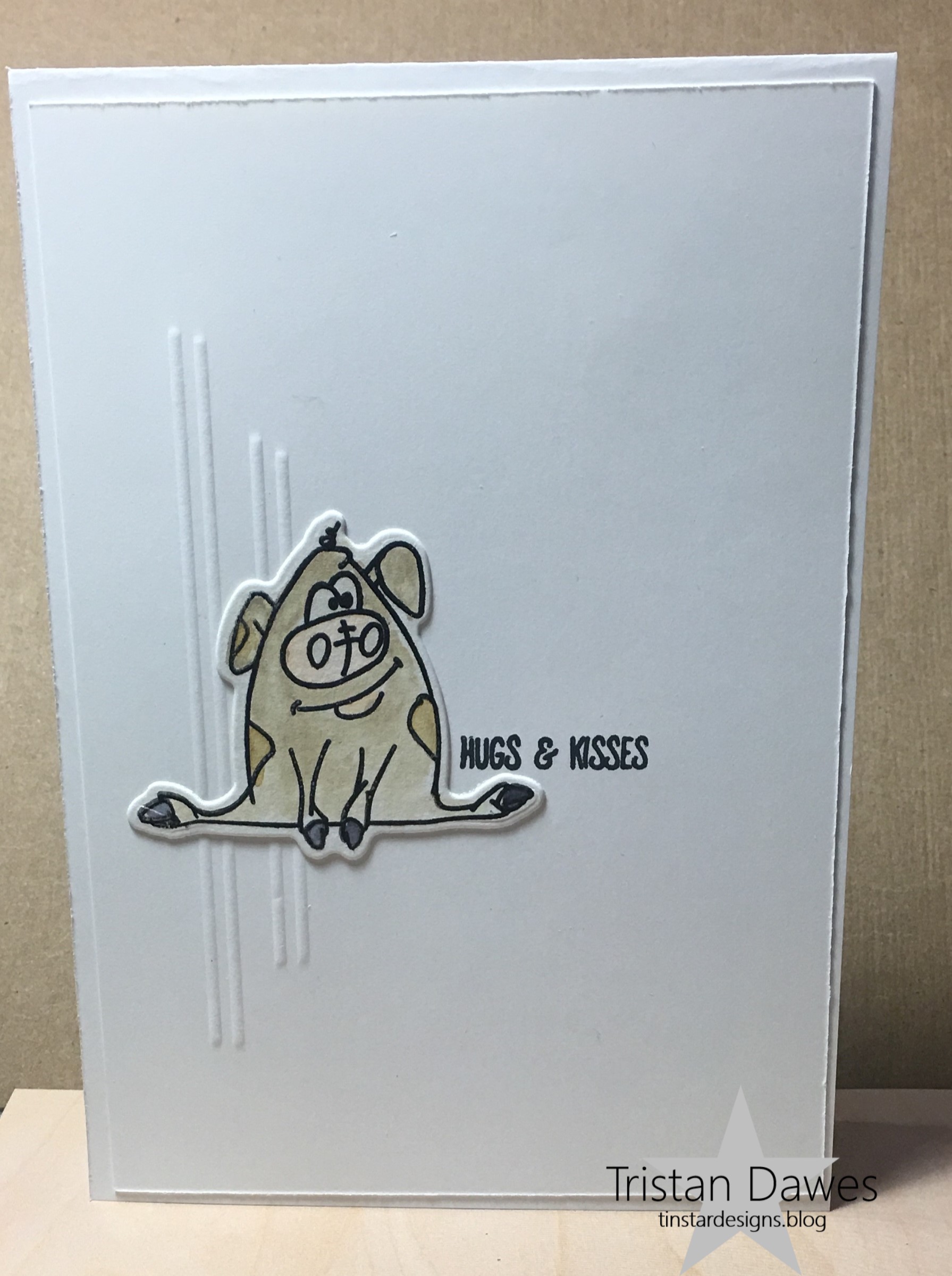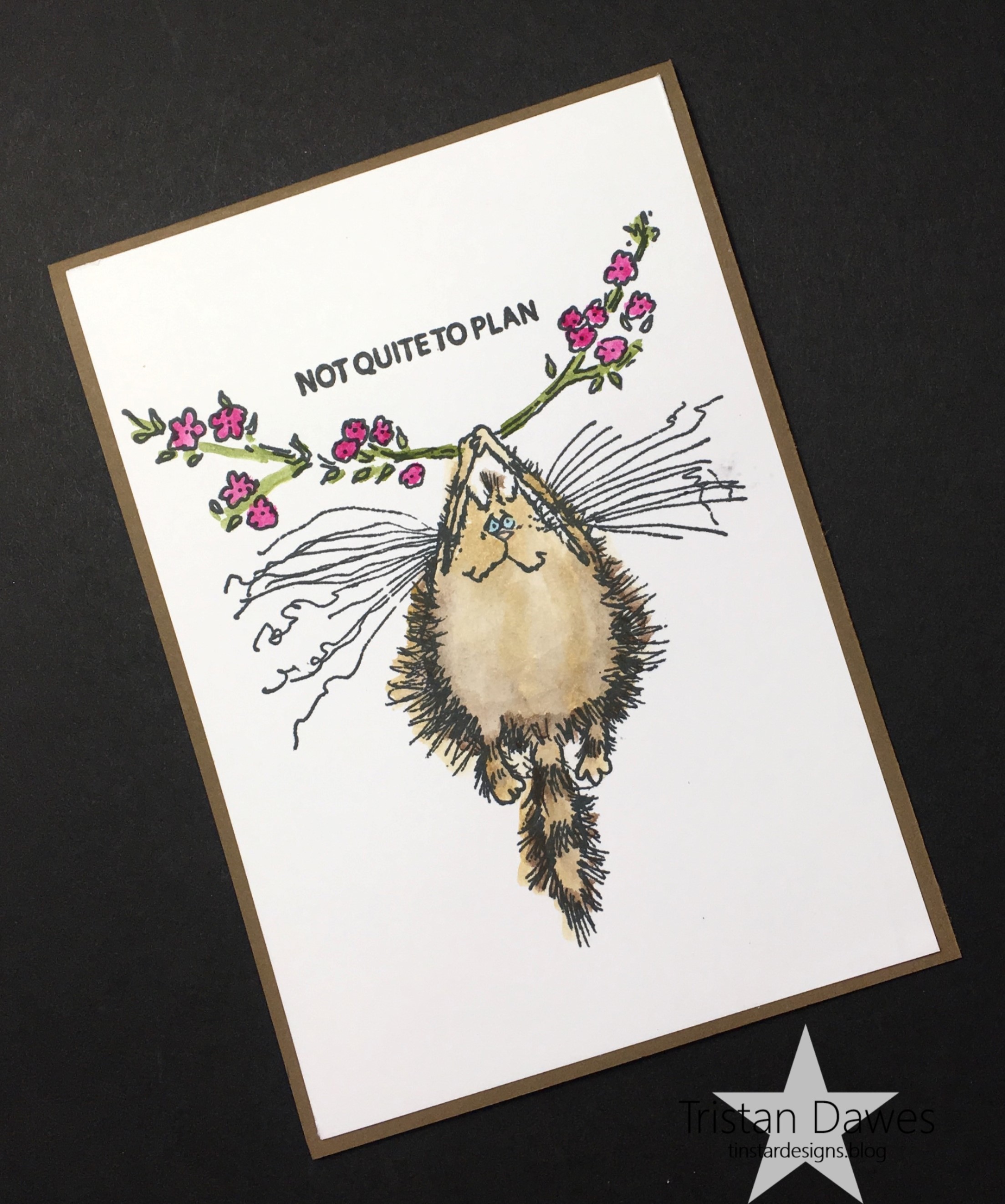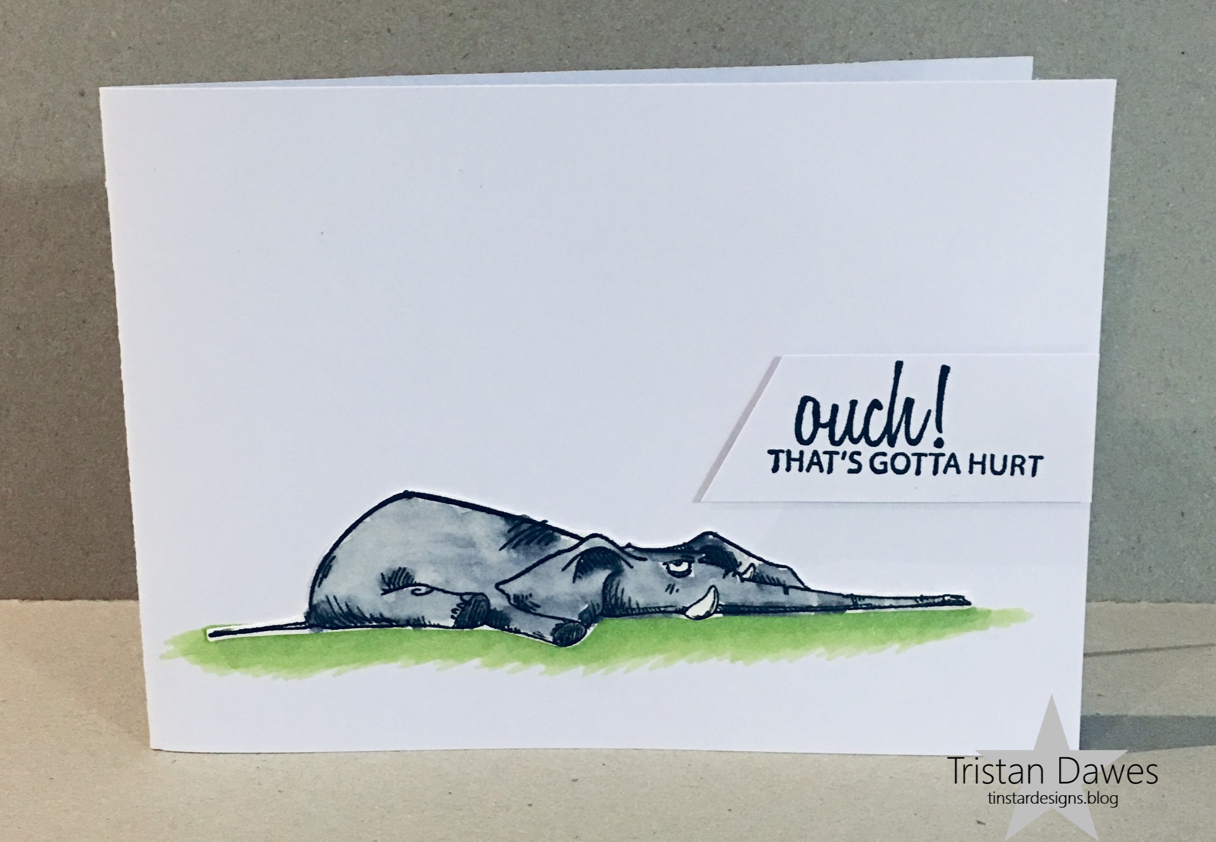 My card uses an image from Katzelkraft ‘Les jungles’. I adore this flat elephant and made a sentiment on my PC to match how he looked.