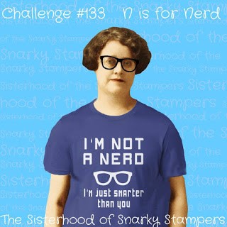 Lastly, card #5 is for the Sisterhood of Snarky Stampers #138 – N is for nerd!