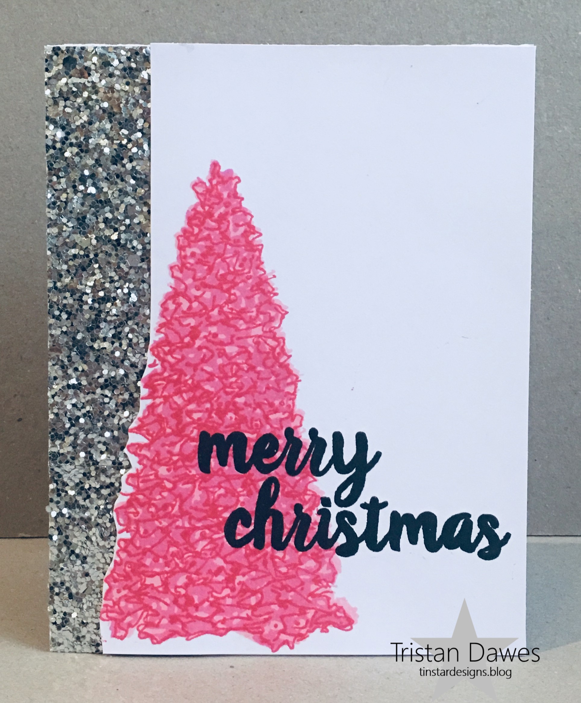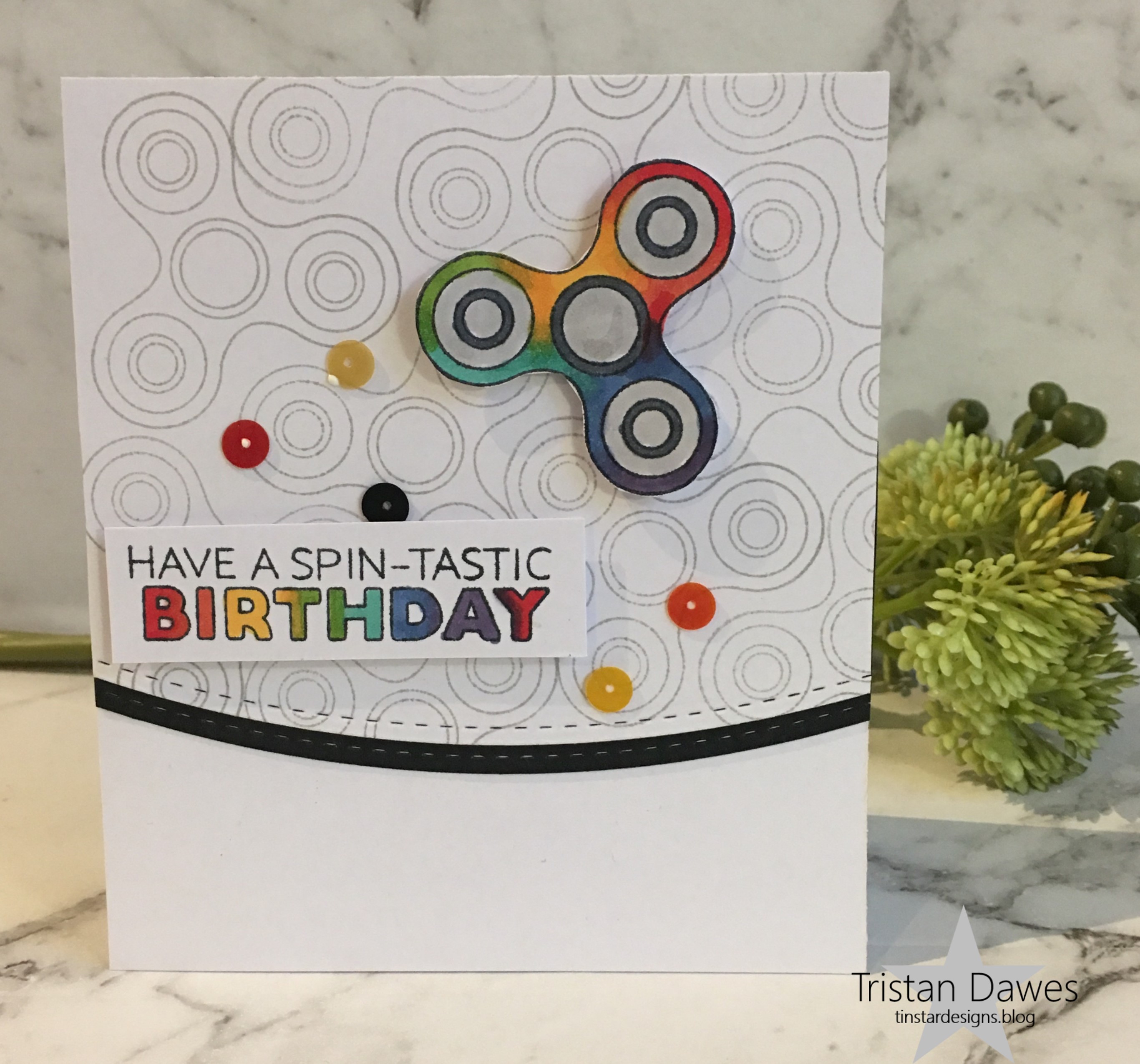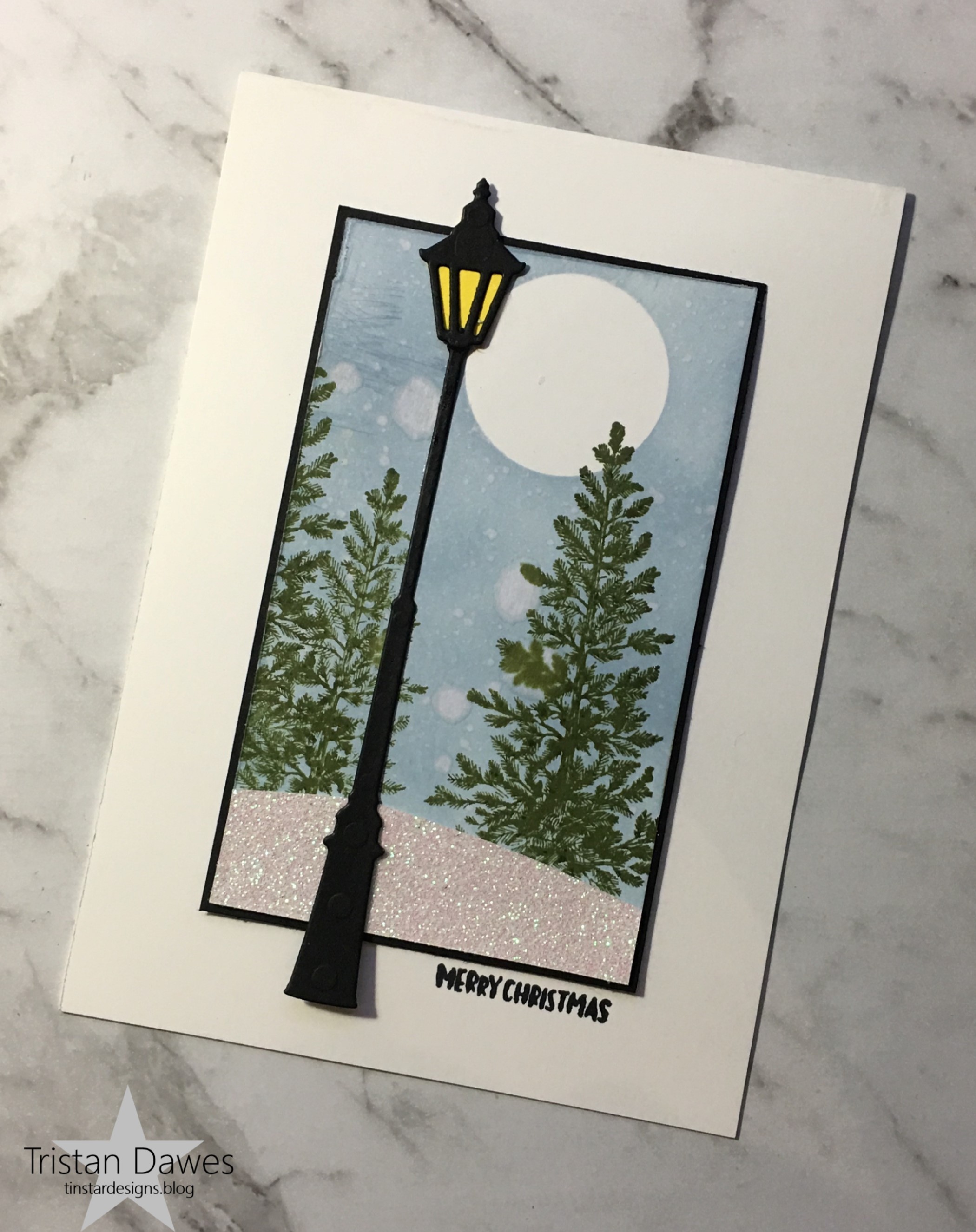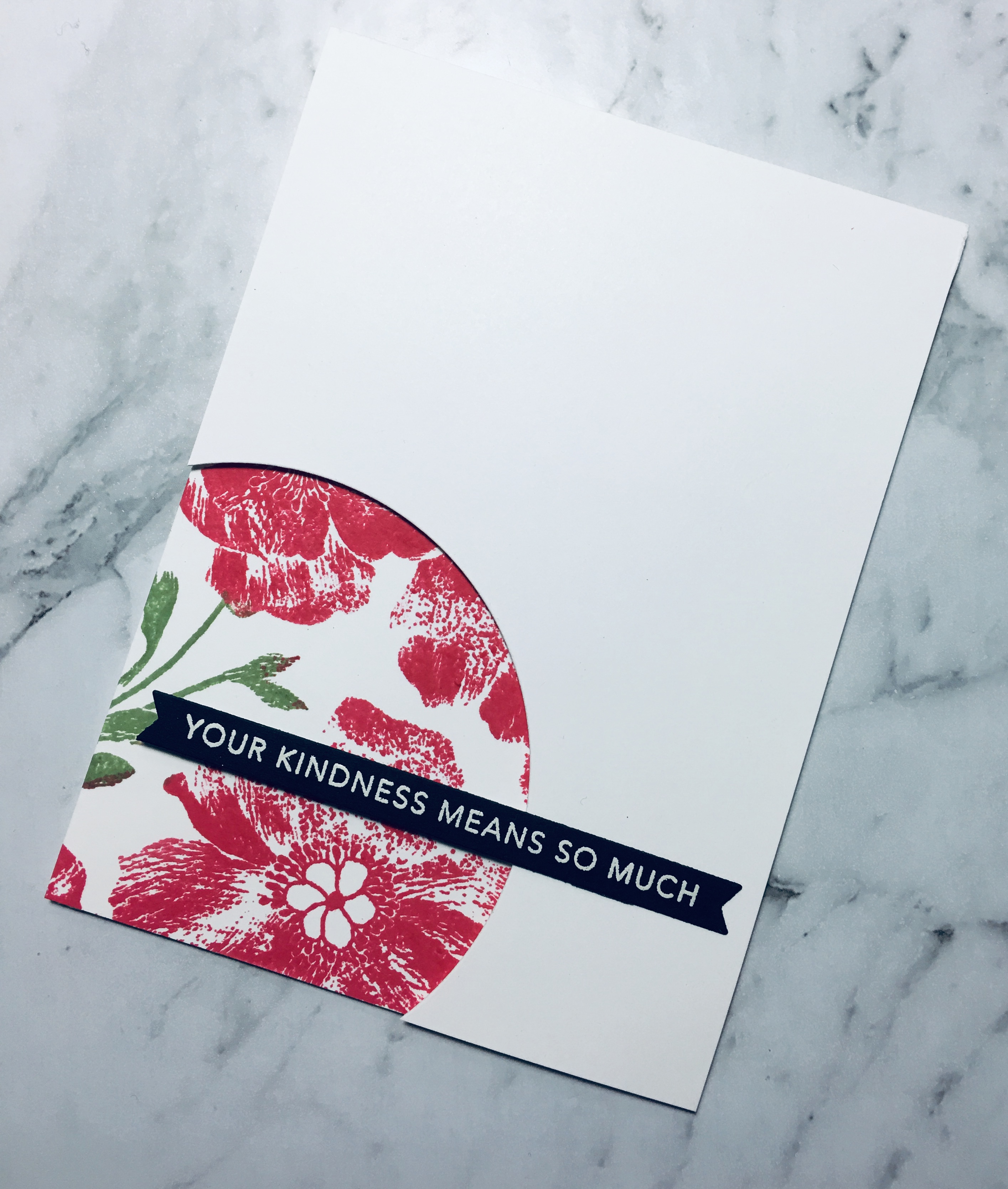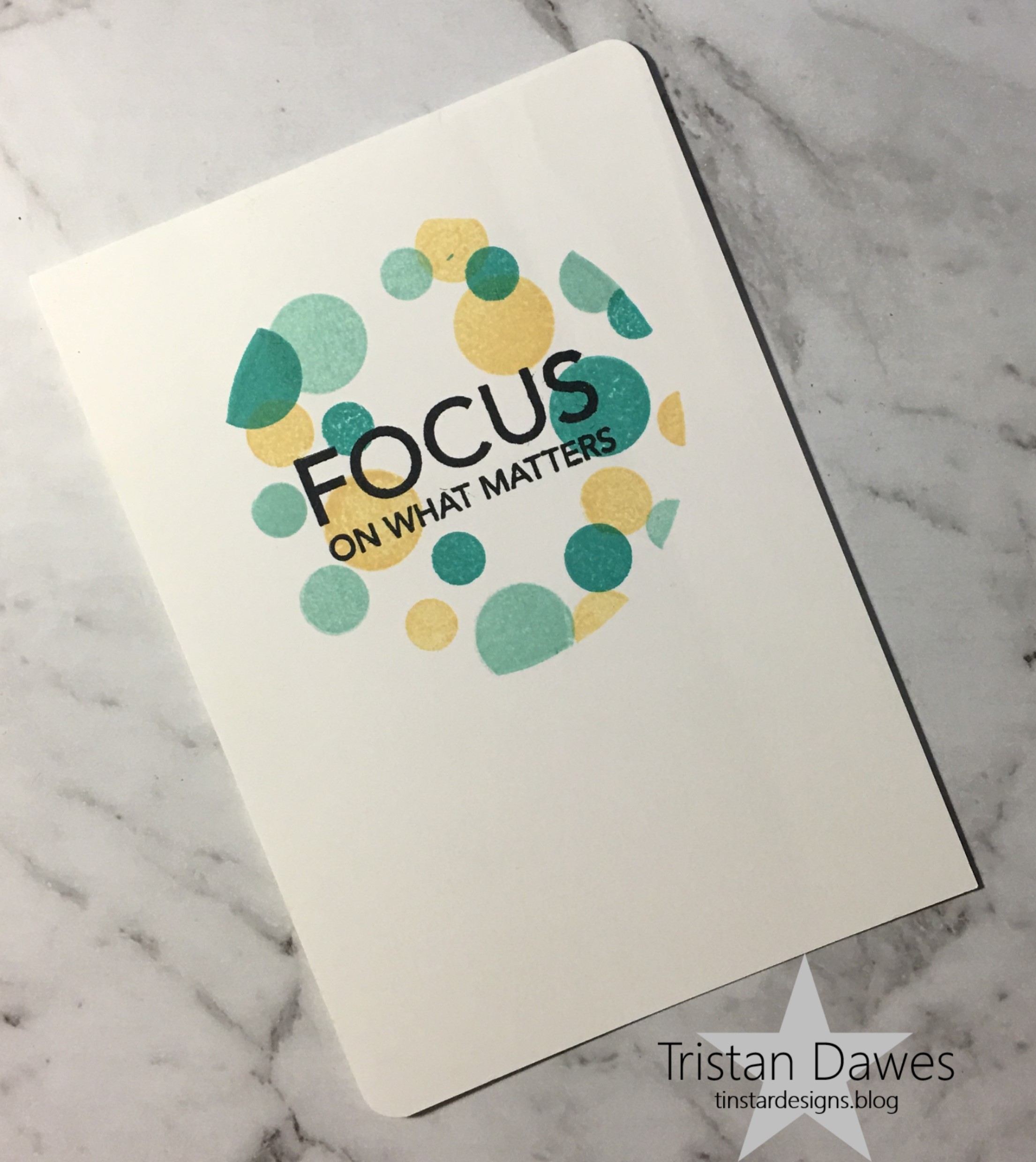 I did a bit of masking on this card to create the circle at the top and then stamped 3 sizes of dots from the MFT ‘Bokeh builder’ stamp set in the SU inks of So Saffron, Bermuda Bay and Pool Party. I then rounded 2 corners for the finishing touch.
