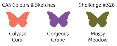 Next up is a card for Less is More #398 – OLC spots and Clean and Simple Friday #161 – colour challenge.