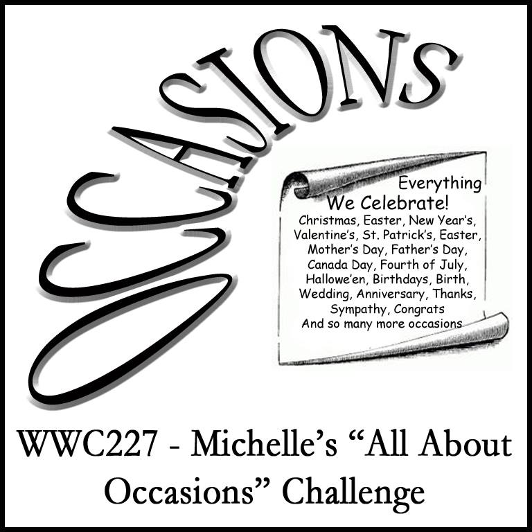 I recently cup up all my SU DSP so that I would start to use it and not hoard it, so these 2 challenges came at the perfect time! I used the matching DSP and stamp set from SU called ‘Geared up garage’. I did a little bit of surgery on my car image (after it was stamped) to turn it into a convertible. I used 3 DSP layers and created my sentiment on my PC. I added a bit of crystal effects to the windscreen to make it look like glass.