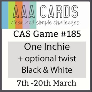 Lastly is a card for AAA Cards #185 – One inchie opt twist black and white.