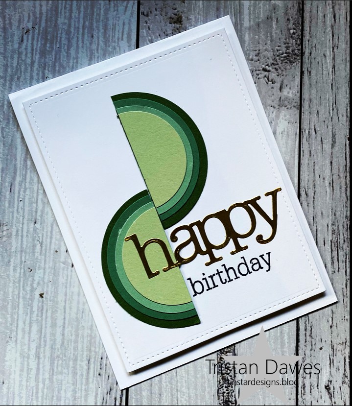 I’ve been trying to use up some of my card stock scraps and what better way than to create a series of circles for a geometric card. I cut the circles in half, added a gold die cut ‘happy’ and stamped the ‘birthday’.