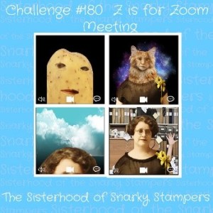 Next is a card for The Sisterhood of Snarky Stampers #180 – Z is for zoom meetings.