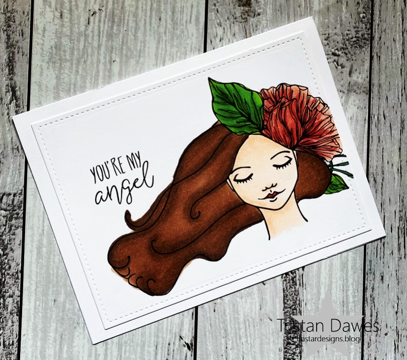Today I’ve played with another digital image from Gracielle Designs ‘Dreamy Girls’. I printed her on some Stampin Up white card stock and then coloured her with my Spectrum Noir Tri-Blend markers.
