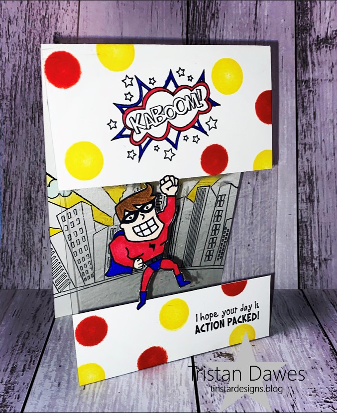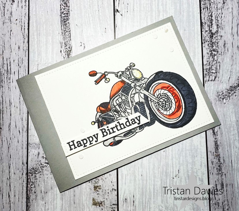 I used a stamp set that came with a craft magazine that has some awesome masculine images. I coloured the motorbike with my Stampin Blends and added it to some grey cardstock.