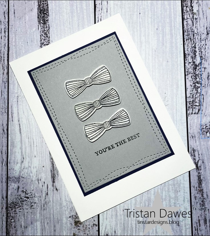 I used the Stampin Up ‘Handsomely Suited’ stamped onto some DSP and then die cut out. I love these little bow ties.