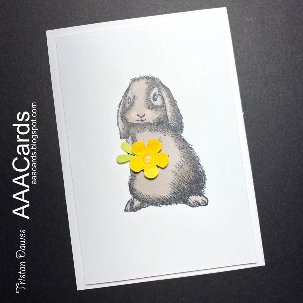 I just love bunnies, so knew my card had to have one on it. I used the bunny from Stampin Up’s ‘Easter Friends’ stamp set, which I coloured with my Stampin Blends. I added a punched flower for spring and left the sentiment off, so that I could use the card for any reason.