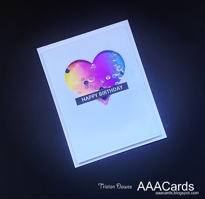 For my card, I made an alcohol ink background with my Stampin Blends and added a die cut heart panel over the top to form my shaker card.