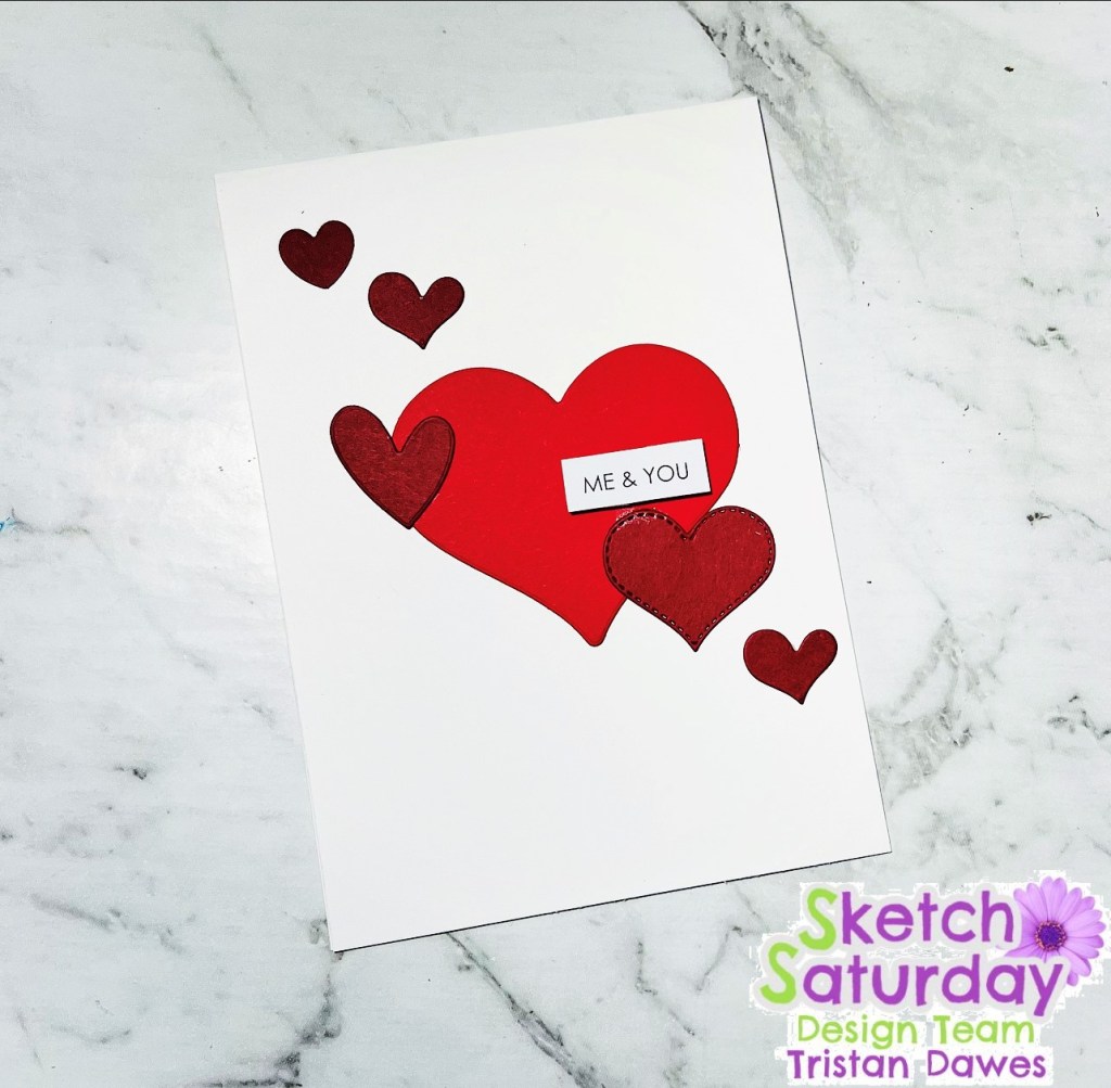 How versitle is this sketch? No need to be restricted by the shapes, you can make them whatever you want – like I did using heart dies. I did rotate my card to be verticle rather than horizontal – my go to card base!