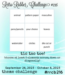 My last card is for a challenge I’m playing with for the first time – Retro Rubber Challenge #216.