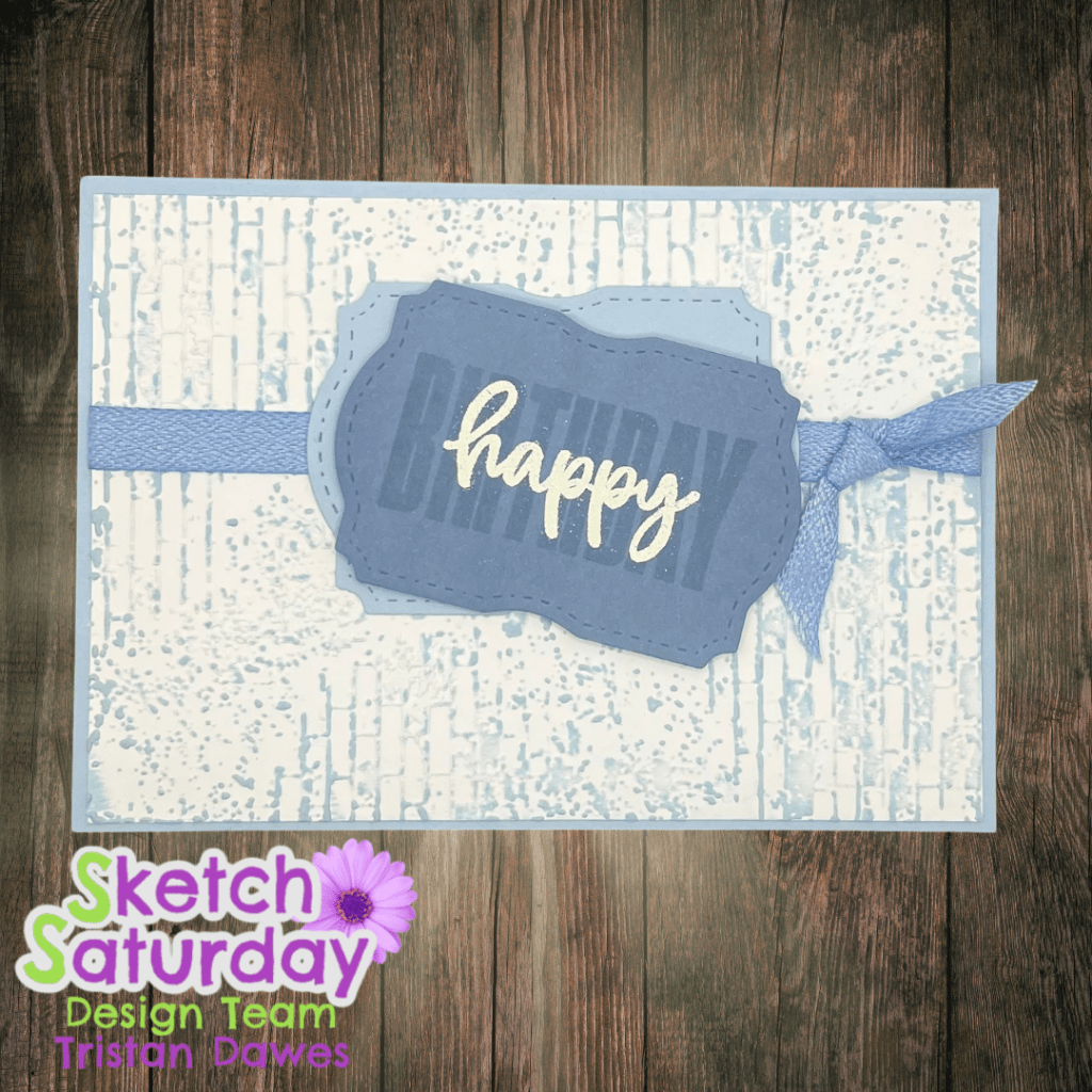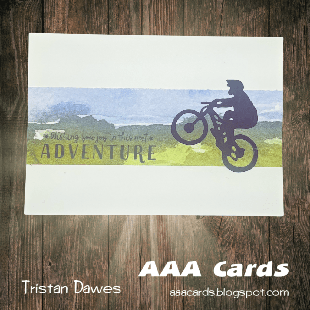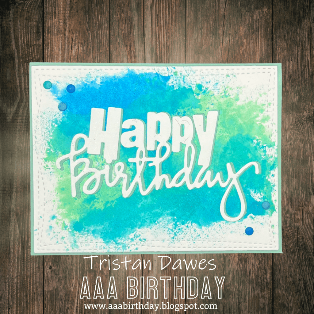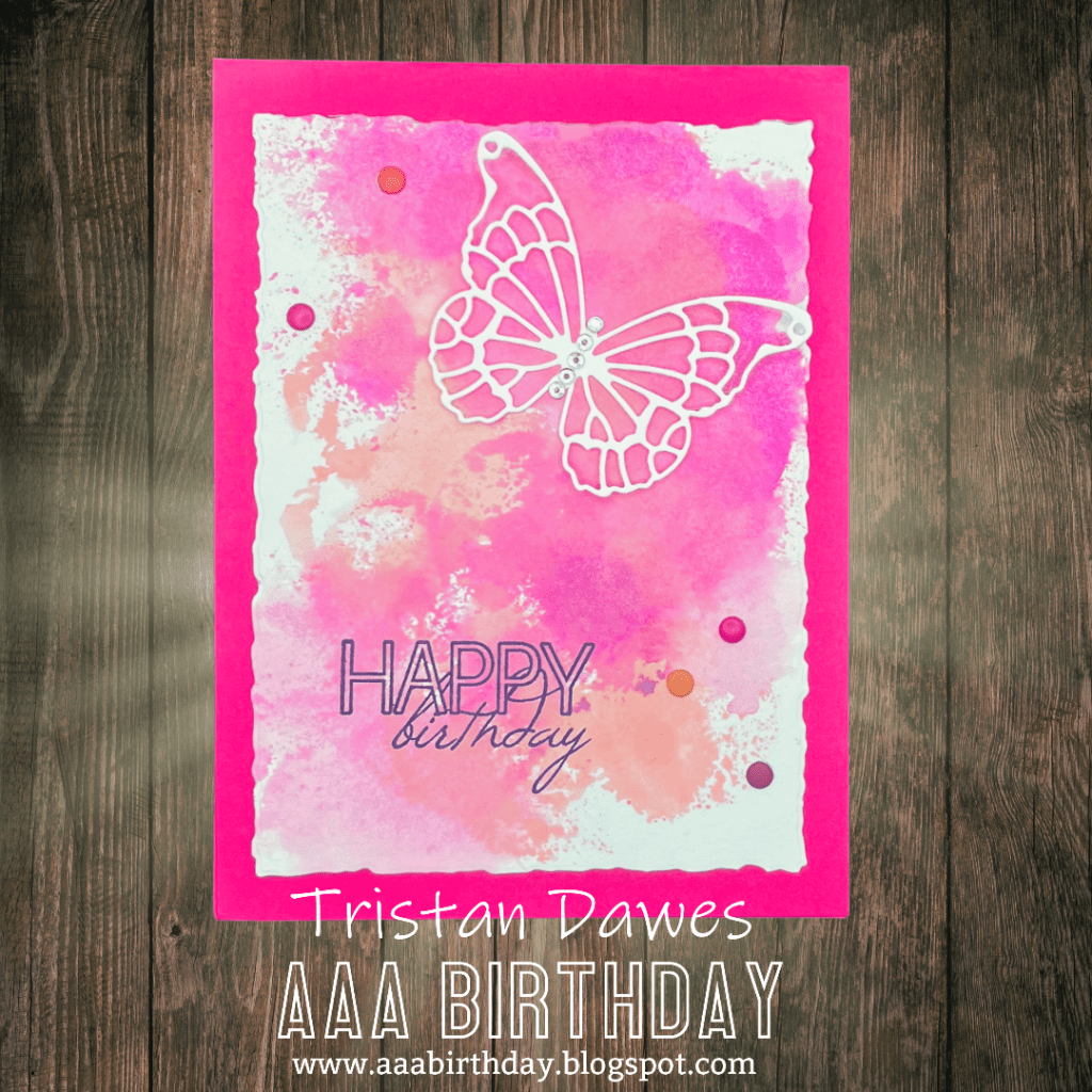 These are such a pretty colour combination, so I decided to do some sponging and then lifted colour through an old Stampin Up stencil which gives that faded look. I then diecut the sentiment, added few splatters and mounted on a white cardbase.