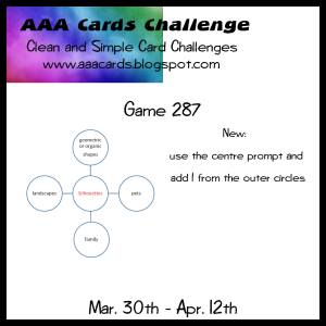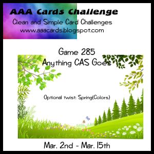 Come join in the fun; we’d love to see how you were inspired. Check out the projects that the other artists at AAA Cards have created, take the challenge and link your creation to the challenge post. We’d love to have you join us. You have until Saturday, 12th April to link up your project.