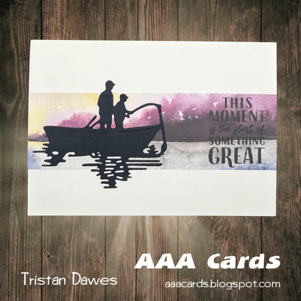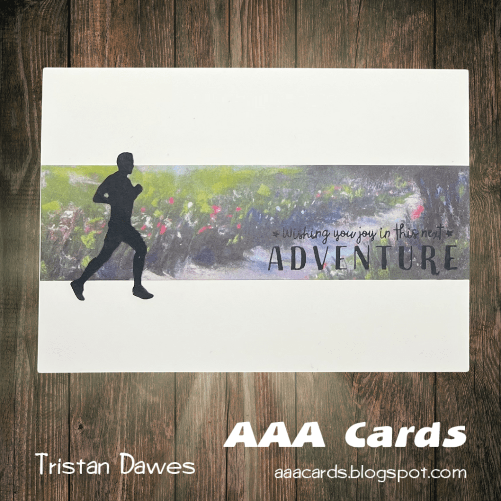 For my two cards, I went with silhouettes and landscapes. I used Stampin Up DSPs – New Horizons (fishing) and Meandering Meadows (runner). The sentiments are from the SU stamp set ‘Greatest Journey’. The runner die is from the matching die set to the stamps and the fisherman is an old miscellaneous one.