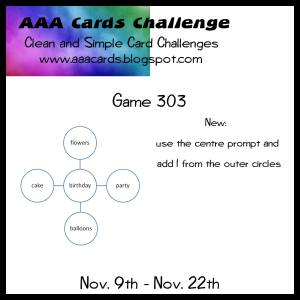Come join in the fun; we’d love to see how you were inspired. Check out the projects that the other artists at AAA Cards have created, take the challenge and link your creation to the challenge post. We’d love to have you join us. You have until Saturday 6th December to link up your project.